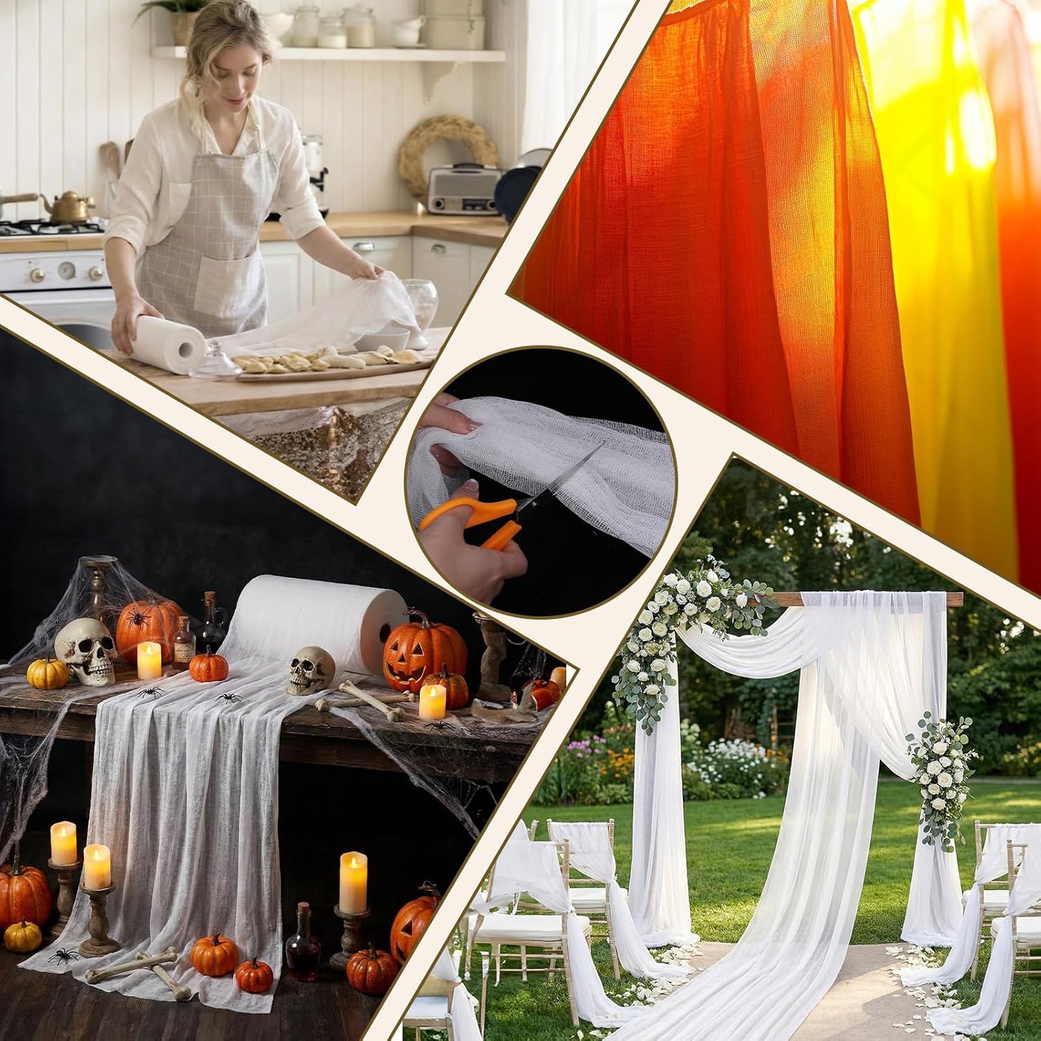 Features: Ideal for chefs, home cooks, craftsmen& cleaners! Our 80-yard x 36-inch unbleached cheesecloth comes in density grade 10 for DIY crafts, Halloween decor, polishing & dust filtering; grade 10 for yogurt, cheese, juice & coffee straining. 100% cotton, dye-free, safe, and reusable. Machine/hand washable, thick & durable, it’s also perfect for wrapping poultry, canning, or lining kitchen tools—custom-cut to any size for all your needs! Specifications: Material: Cotton Color: White Size: 36 Inch*80 Yard Package includes: 1 roll x Cheese Cloth for Straining Notes: Manual measurement, please allow slight errors on size. The color may exist a slight difference due to different screen displays.