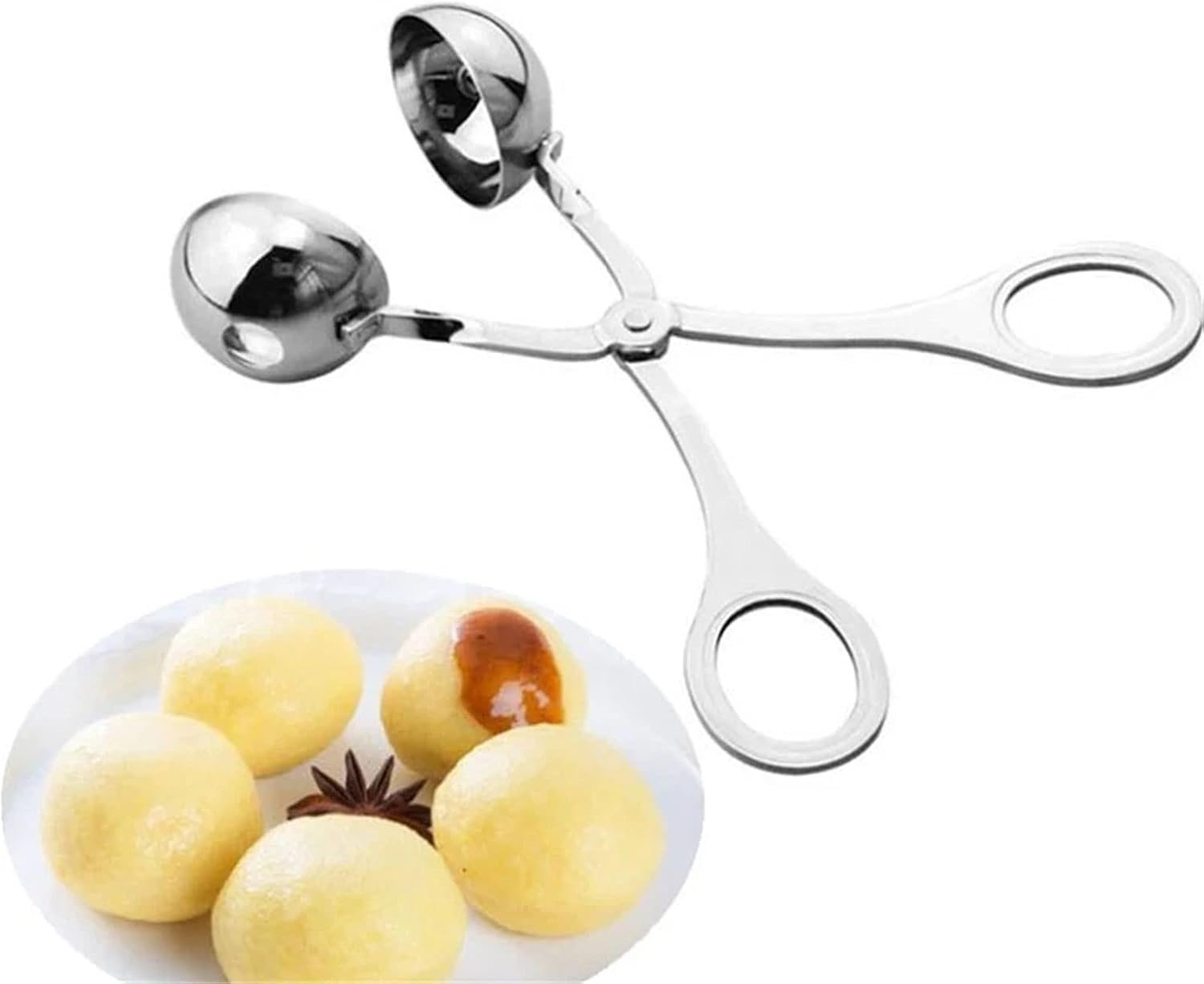 LEIXIUSMfor kitchen, restaurant, dinning bar and cafeteria.Specifications::Material: stainless steelColor: SilverSmall:16.5 x 7.5 cm / 6.42 x 2.95 in ; Ball size: 1.38inLarge:17.5 x 7.5 cm / 6.75 x 2.95 in ; Ball size: 1.78inHow to Use?1. Soak the Oil.2. Put the Meat on the Scoop.3. Clip the Meat Firmly.4. Complete the Meatball.Package Included: 1 * Clip