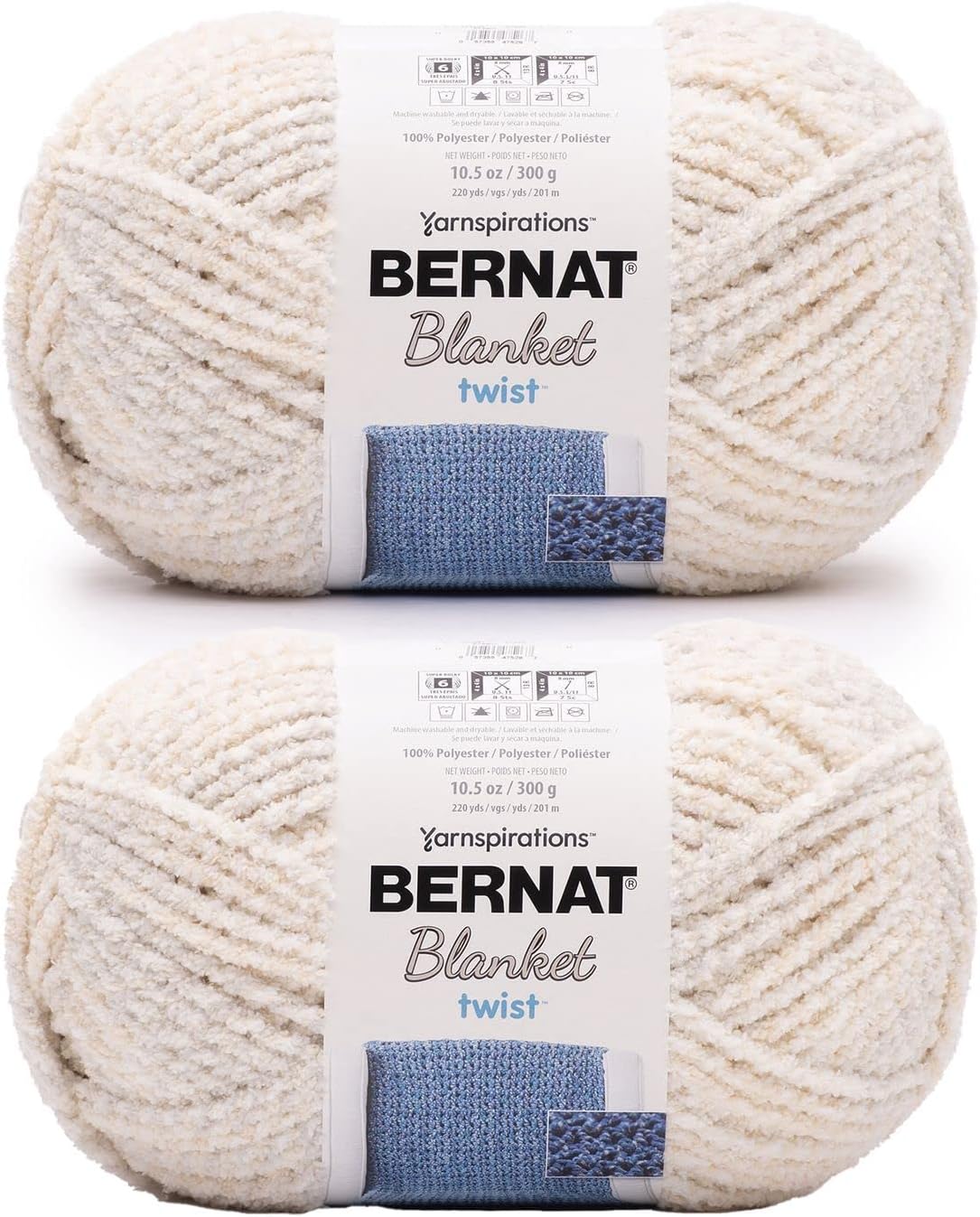 A luxurious, soft and cozy yarn, Bernat Blanket is a chenille-style yarn that’s perfect for home décor projects. From blankets, to crochet baskets, Blanket is ideal for a wide range of projects. It’s super bulky weight stitches up quickly, making it a great choice for afghans and blankets. Available in a wide range of solid and variegate shades to compliment your home décor. Economical big ball size for larger projects. Conveniently machine washable and dryable.