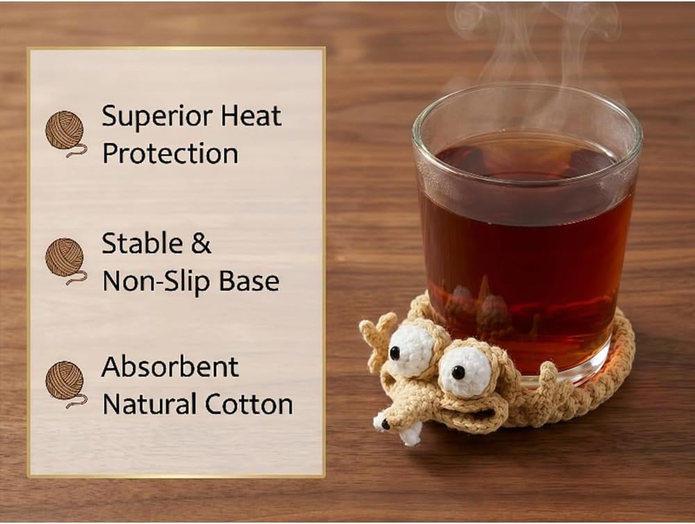Add a playful touch to your coffee time with this Hand-Crocheted Fun Squirrel Coaster. Handmade with soft yarn and charming details, it protects your table while adding cute personality to your space. Perfect for mugs, coffee cups, or as a small decorative accent, it also makes a fun and thoughtful gift for squirrel and coffee lovers. Specification:Name: Hand-Crocheted Fun Squirrel Coasters Size: 4 inches (10 cm) Style: Hand-Crocheted Package Include:1/5 x Hand-Crocheted Fun Squirrel CoastersNote:Due to the different monitor and light effect, the actual color of the item might be slightly different from the color showed on the pictures. Please allow 1-2cm measuring deviation due to manual measurement.