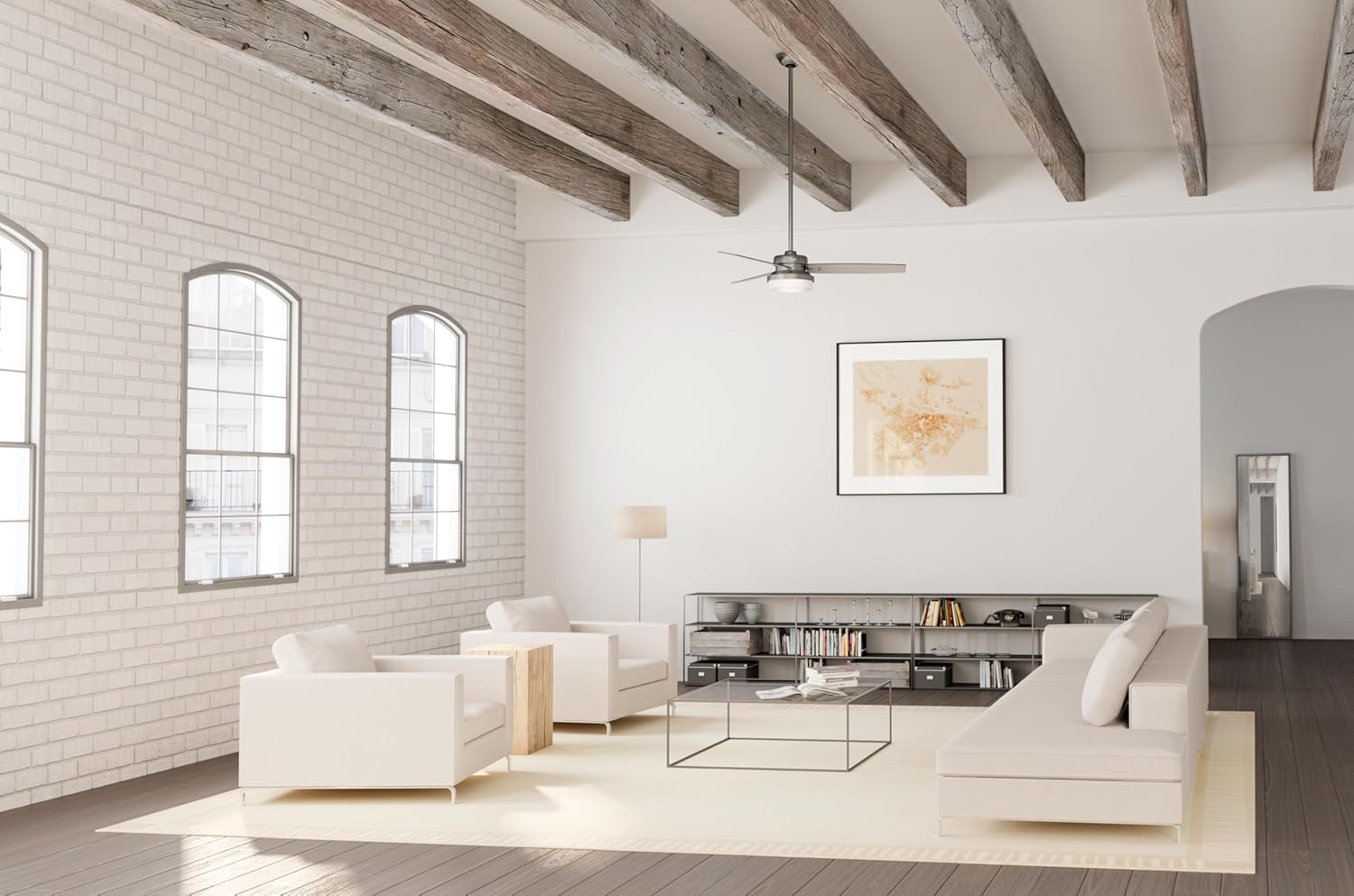 The Sentinel modern indoor ceiling fan with LED light and remote control is a casual fan that fits seamlessly into any large, contemporary space. The simple, clean lines found throughout the design are paired with premium finish combinations to make for a delightful addition to your home decor. The LED light ceiling fan has fully-dimmable, high-efficient LED bulbs that give you total control over your lighting. This adjustable mount fan comes with three-position mounting system allows for standard, low, or angled mounting. 2 Inch downrods ensure proper distance from the ceiling and optimize air movement at your preferred blade height. This reversible fan comes with reverse rotation fan blades that keep the rooms in and out of your home feeling cool during summers and warm during winters.