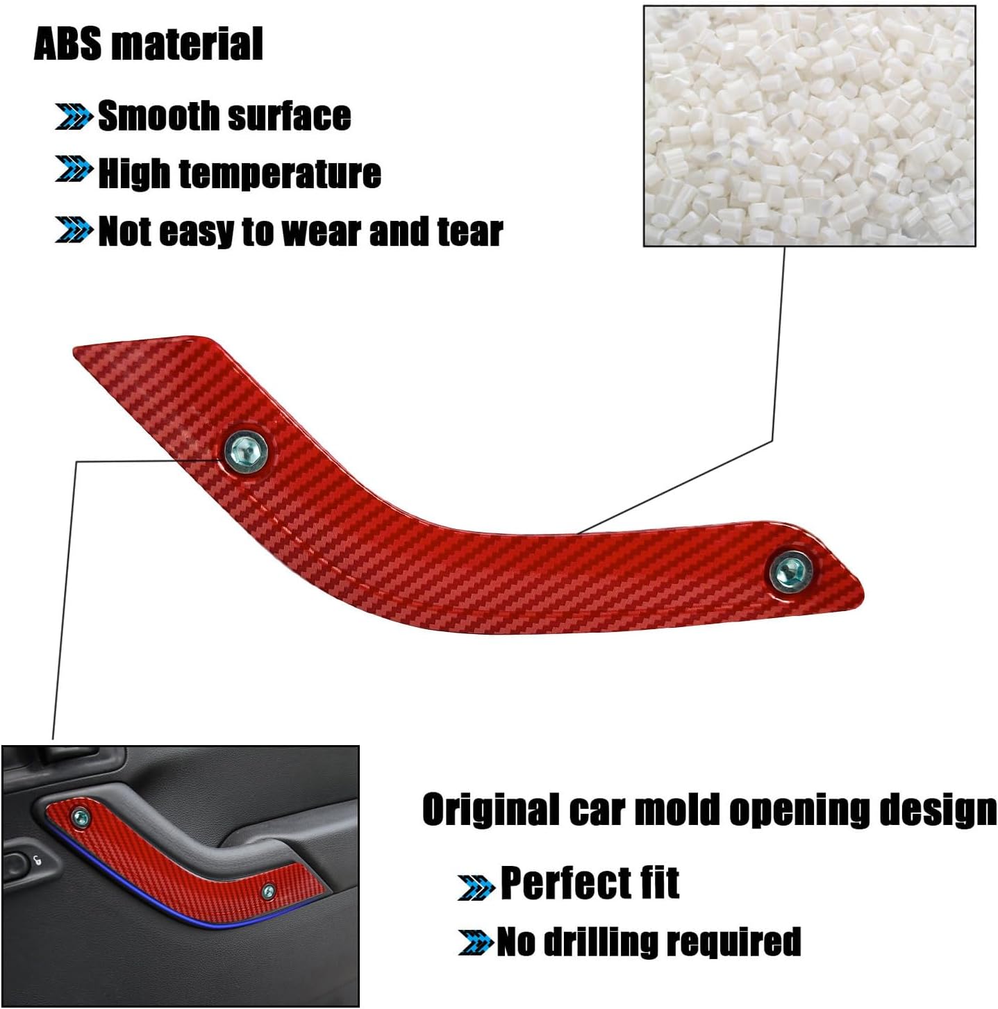 Wrangler JK JKU decorative cover kitDesign for:Fit 2011 2012 2013 2014 2015 2016 2017 Wrangler JK JKUFeatures:- Easy to install- Out of the ordinary,three color options- Interior upgrade- Made of durable and long lasting materialPrevent your interior part from finger nails, keys scratches