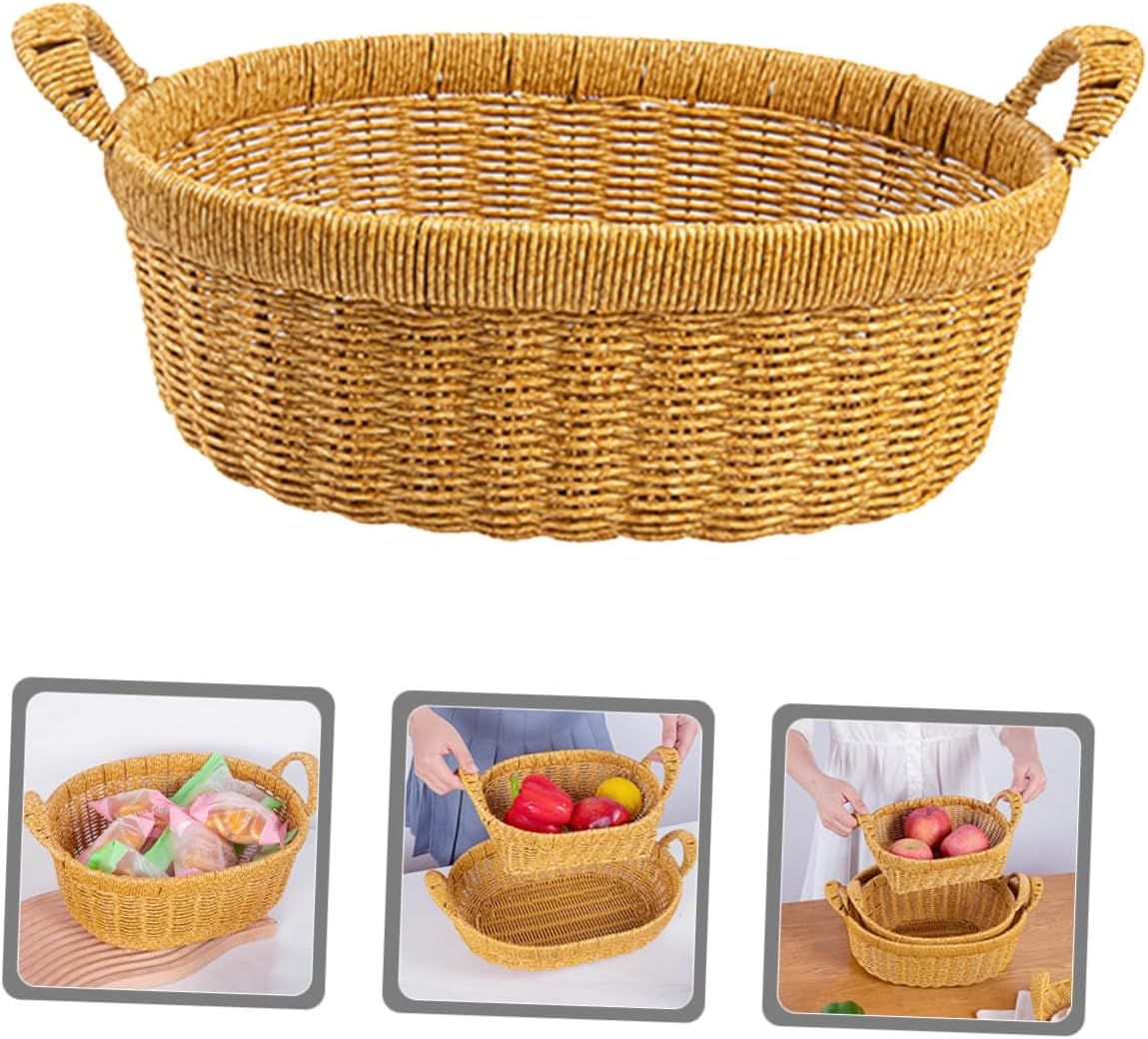 Package Include 1 x basket Features -Product Info:Fruit plate bread basket -Color:Khaki -Size:35.00X30.00X18.00cm/13.76X11.79X7.07in -Material:PP - The weaving basket can be very suitable for picnic, home storage tray, home decoration imitation rattan dessert rack. - Can be placed in your living room, dinning room, kitchen, and other area as an ornament for your home imitation rattan bread basket. - Multi-purpose, not only suitable for home life but also for outdoor picnics and travel imitation of rattan weaving. - The excellent workmanship of our product will bring you a satisfying using experience and bring you happier mood imitation rattan basket. - Easily match your interior decor and bring some retro and rustic beauty to any interior space imitation rattan woven bread baskets.Goods Informationwoven fruit basket This product is a woven basket, which is made of PP material, with good texture, safe and practical.bread basket for serving Easy to install and use, it can be easily applied to your home, a very practical accessory that will meet your needs well