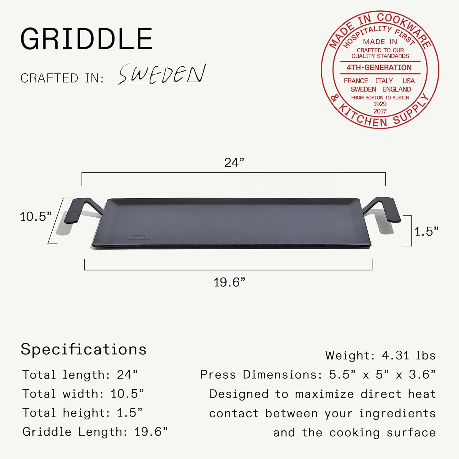 | Included Components | Carbon Steel Griddle |