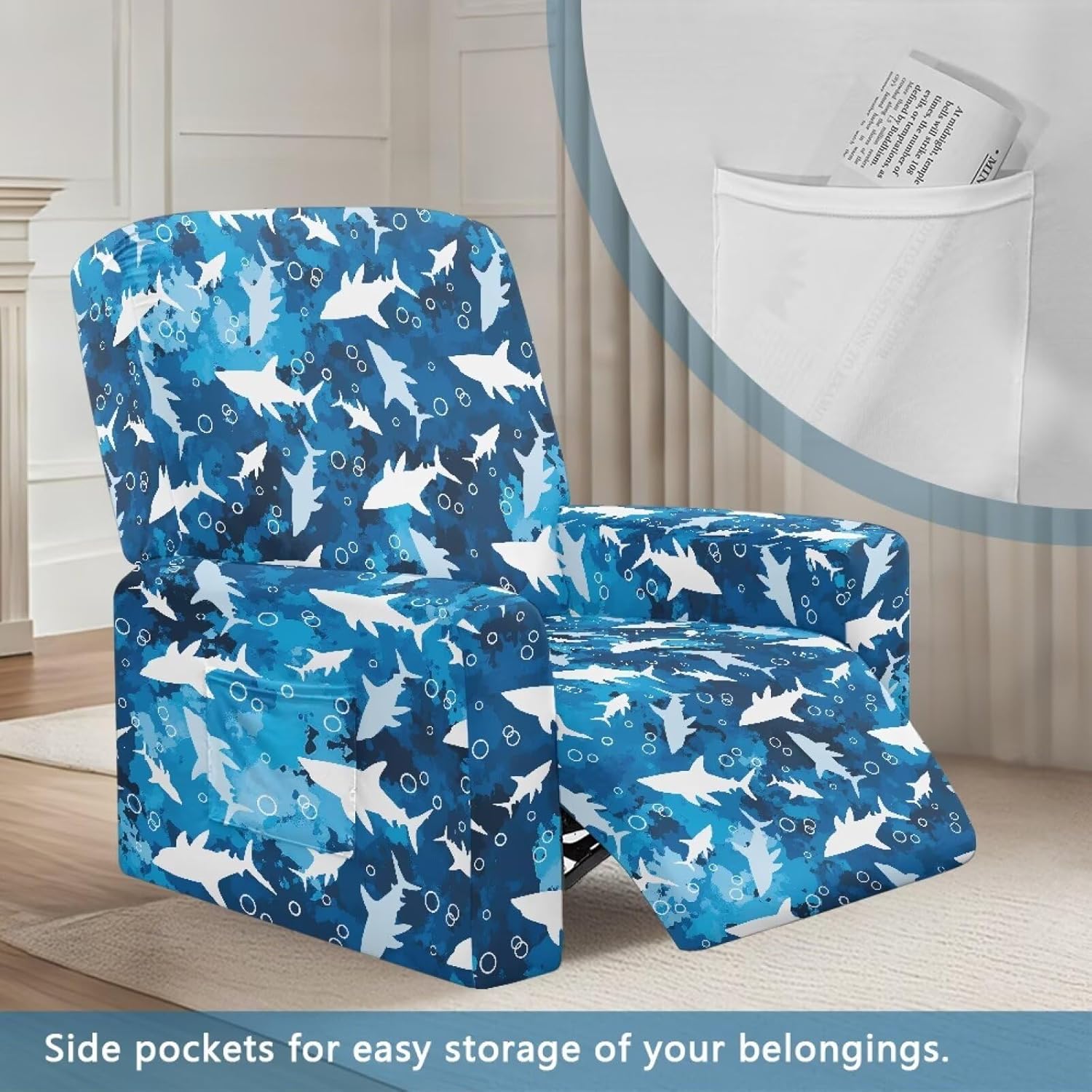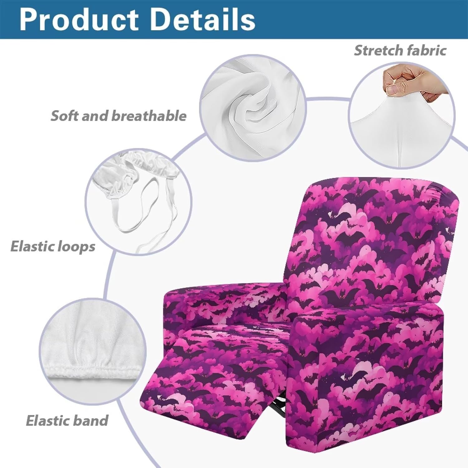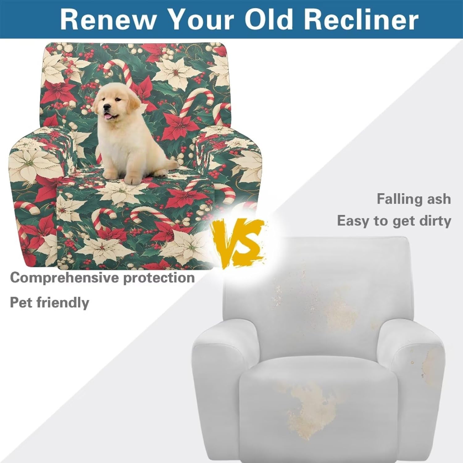 Voxugoniy Stretch Recliner Chair Covers with Pocket Chair Covers for Reclining Chairs Furniture Protector Recliners Couch Cover Soft Recliners Covers with Elastic Bottom Material: Give your worn-out recliner a stylish makeover with premium Stretch Recliner Chair Covers! Crafted from polyester and spandex, Recliner Chair Covers hug every curve of your chair for a custom-fit look. Whether protecting against coffee spills, pet hair, or sun damage, its thick yet breathable fabric offers year-round comfort. The smart design includes reinforced seams, non-slip bottom, and precise openings for armrests, headrests, and reclining mechanisms – ensuring full functionality without removal. Recliners Covers blends with any decor while saving you costly reupholstery. Simply toss it in the washing machine for effortless maintenance. Revive your living room today! Pockets Design:Hide remotes/treats in stealth side compartments. Easy Installation & Clean:One piece design make the installation easier by simply draping, connecting back straps and tucking seams. Then the recliner chair covers will save your furniture from Puppy slobber and bite marks, mischief and spills. Easy removal of cats dogs fur, liquids. Suitable for all recliners/sofas: electric recliners with footstools, leather/velvet/fabric recliners, oversized armchairs. Ideal Gifts: There are Santa Claus for Christmas, cute ghosts for Halloween, and maple leaves for Thanksgiving to create a festive atmosphere. Choose from a variety of patterns such as bohemian florals, animal prints, marbles, and other beautiful prints. They are great gifts forparents, wives, friend, elders, and friends on Halloween, Thanksgiving, Christmas.