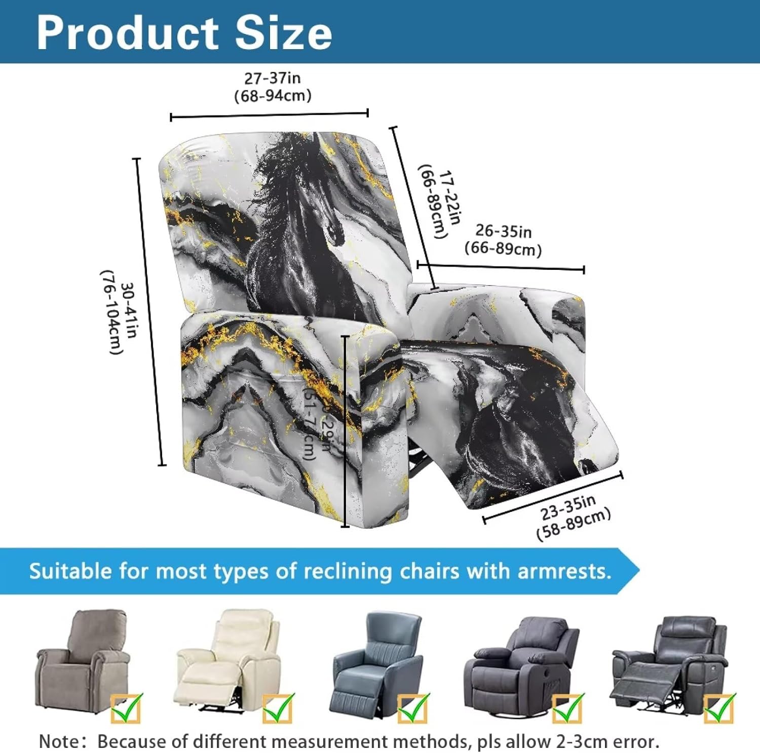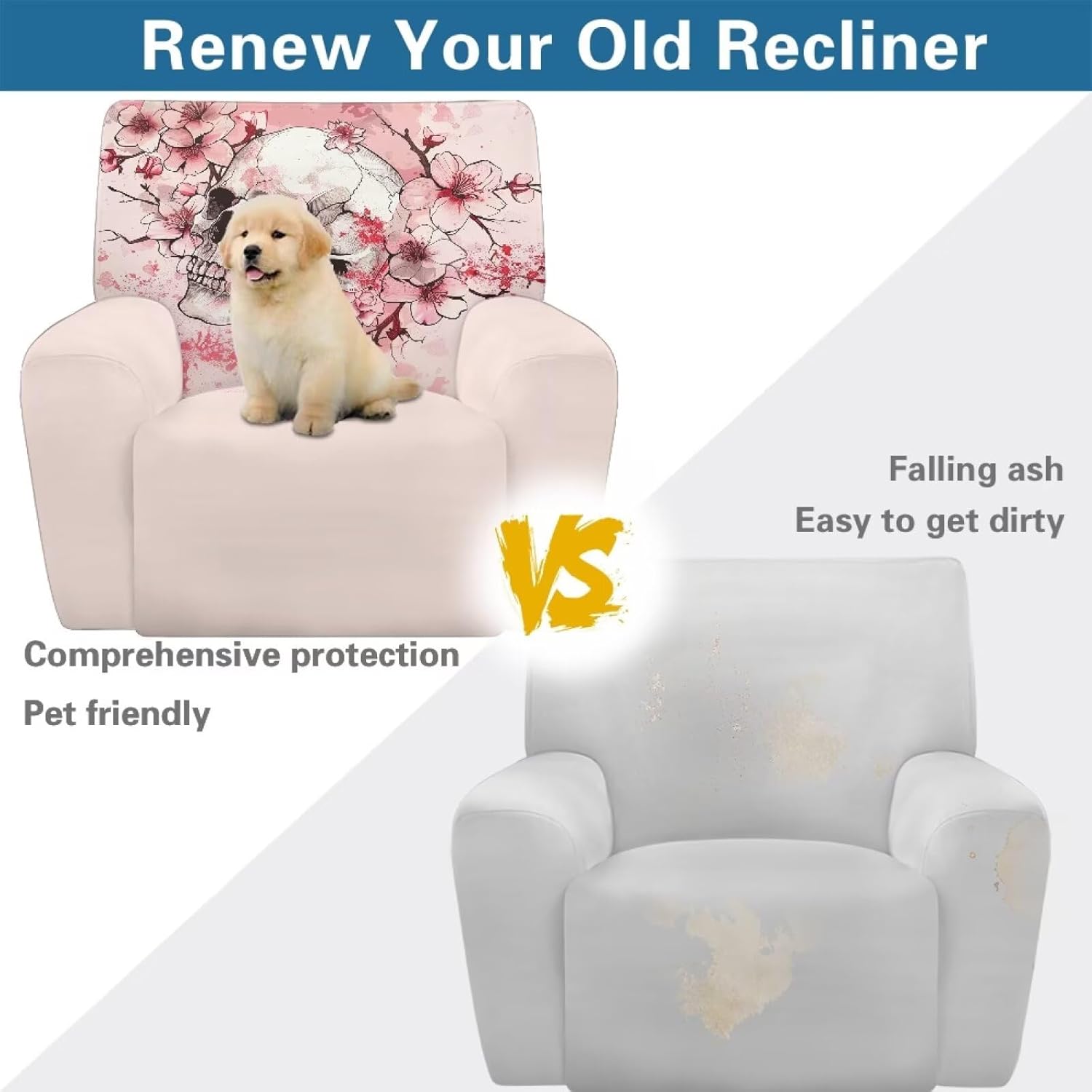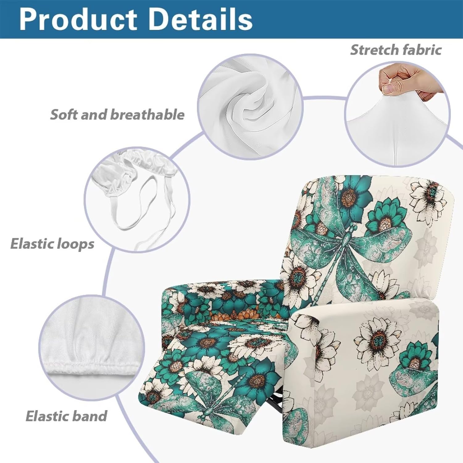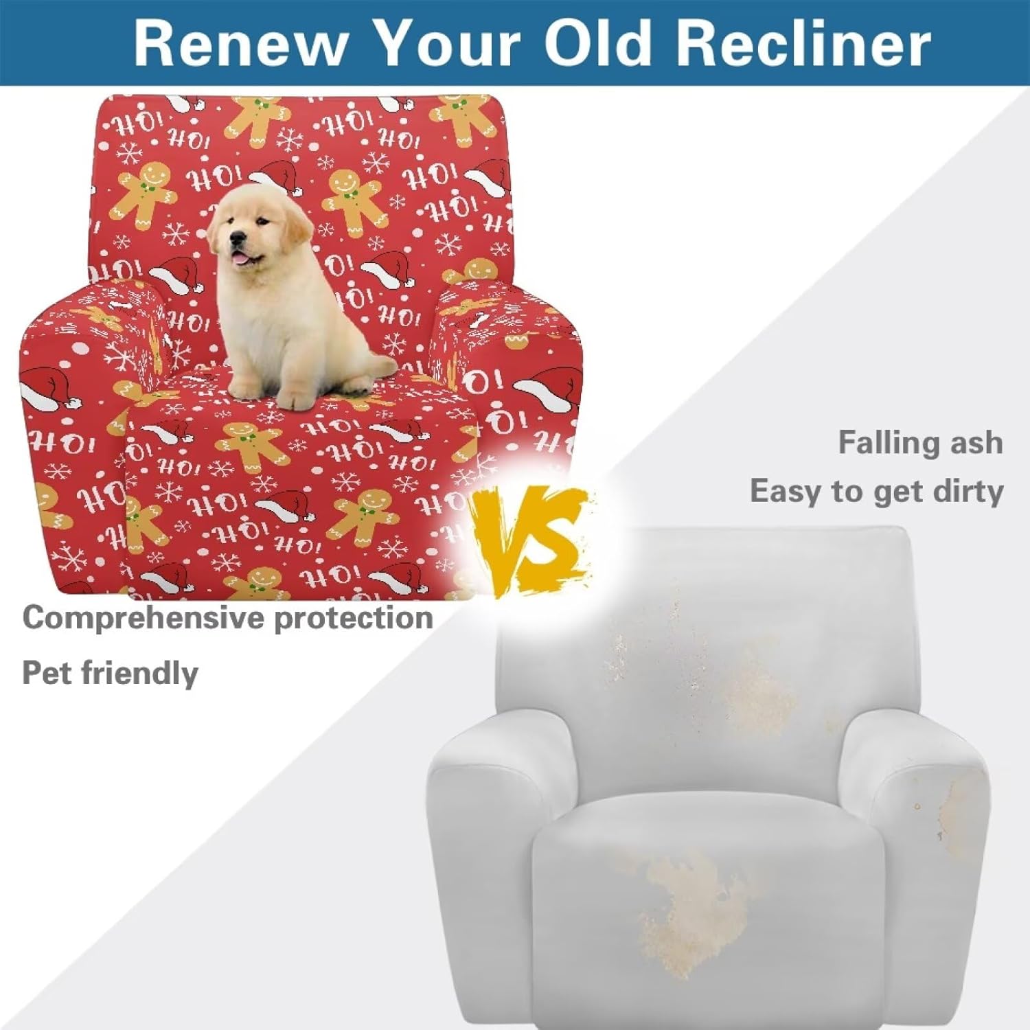 Voxugoniy Stretch Recliner Chair Covers with Pocket Chair Covers for Reclining Chairs Furniture Protector Recliners Couch Cover Soft Recliners Covers with Elastic Bottom Material: Give your worn-out recliner a stylish makeover with premium Stretch Recliner Chair Covers! Crafted from polyester and spandex, Recliner Chair Covers hug every curve of your chair for a custom-fit look. Whether protecting against coffee spills, pet hair, or sun damage, its thick yet breathable fabric offers year-round comfort. The smart design includes reinforced seams, non-slip bottom, and precise openings for armrests, headrests, and reclining mechanisms – ensuring full functionality without removal. Recliners Covers blends with any decor while saving you costly reupholstery. Simply toss it in the washing machine for effortless maintenance. Revive your living room today! Pockets Design:Hide remotes/treats in stealth side compartments. Easy Installation & Clean:One piece design make the installation easier by simply draping, connecting back straps and tucking seams. Then the recliner chair covers will save your furniture from Puppy slobber and bite marks, mischief and spills. Easy removal of cats dogs fur, liquids. Suitable for all recliners/sofas: electric recliners with footstools, leather/velvet/fabric recliners, oversized armchairs. Ideal Gifts: There are Santa Claus for Christmas, cute ghosts for Halloween, and maple leaves for Thanksgiving to create a festive atmosphere. Choose from a variety of patterns such as bohemian florals, animal prints, marbles, and other beautiful prints. They are great gifts forparents, wives, friend, elders, and friends on Halloween, Thanksgiving, Christmas.