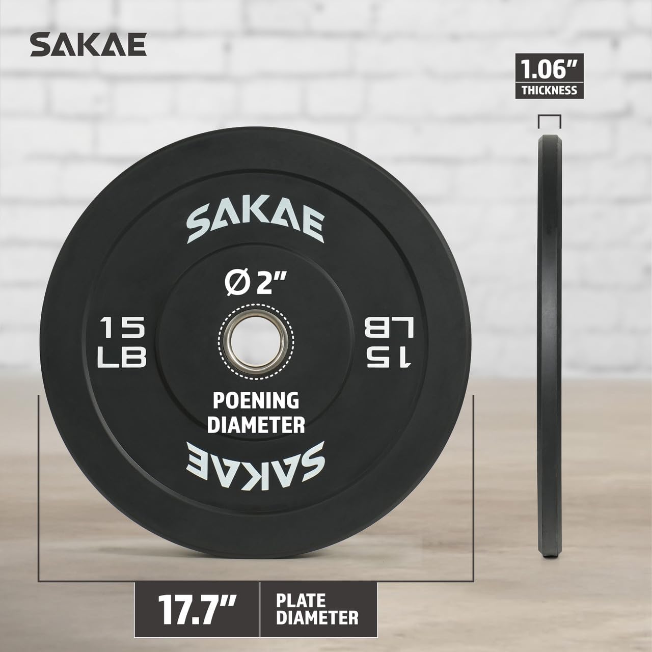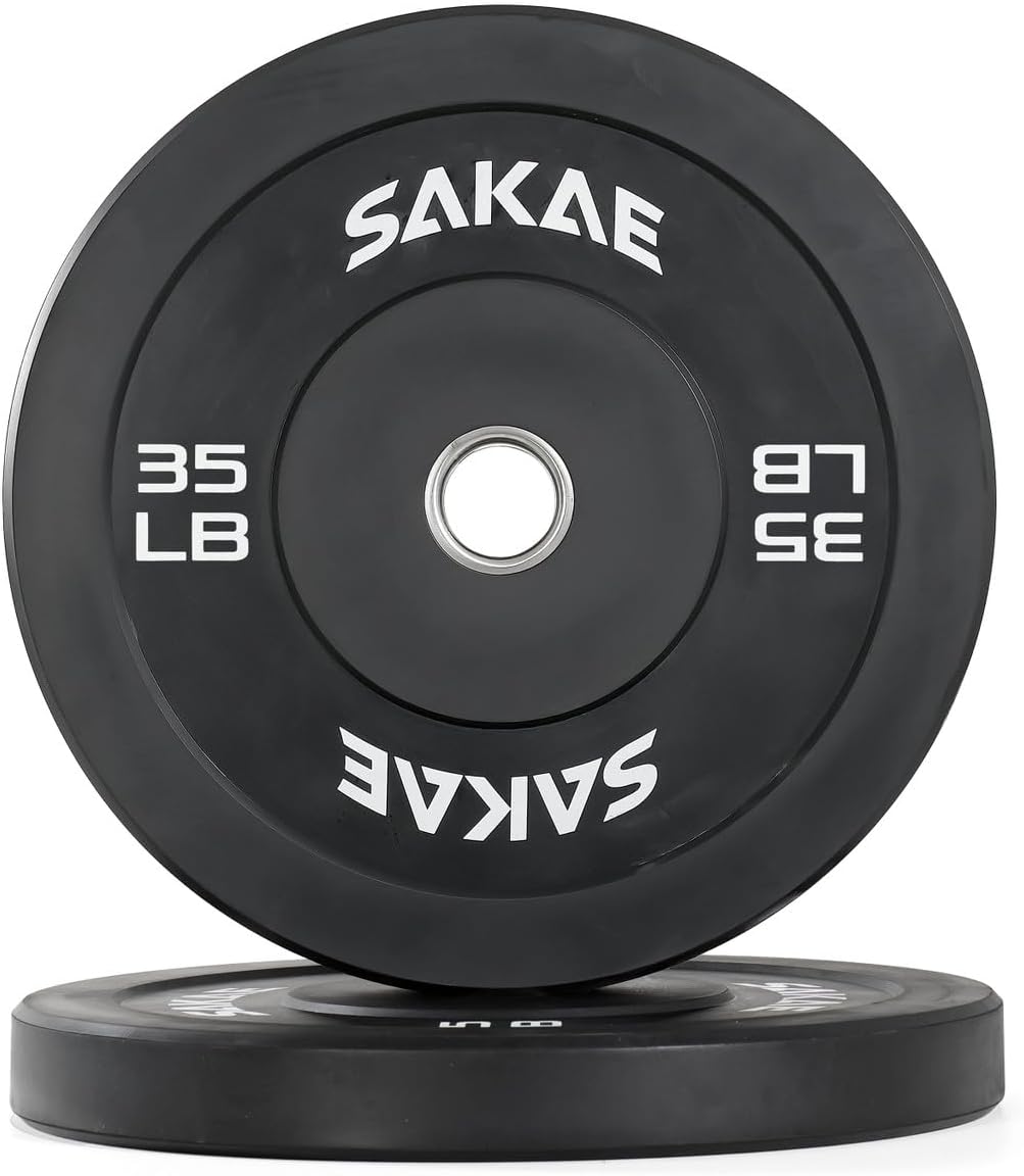 SAKAE Olympic Rubber Bumper Plates, 2-Inch Weight Plate Set with Steel Hub, Ideal for Weightlifting, CrossFit, Strength Training & Home Gym Workout, Available in Single, Pair & Sets, Multiple Sizes