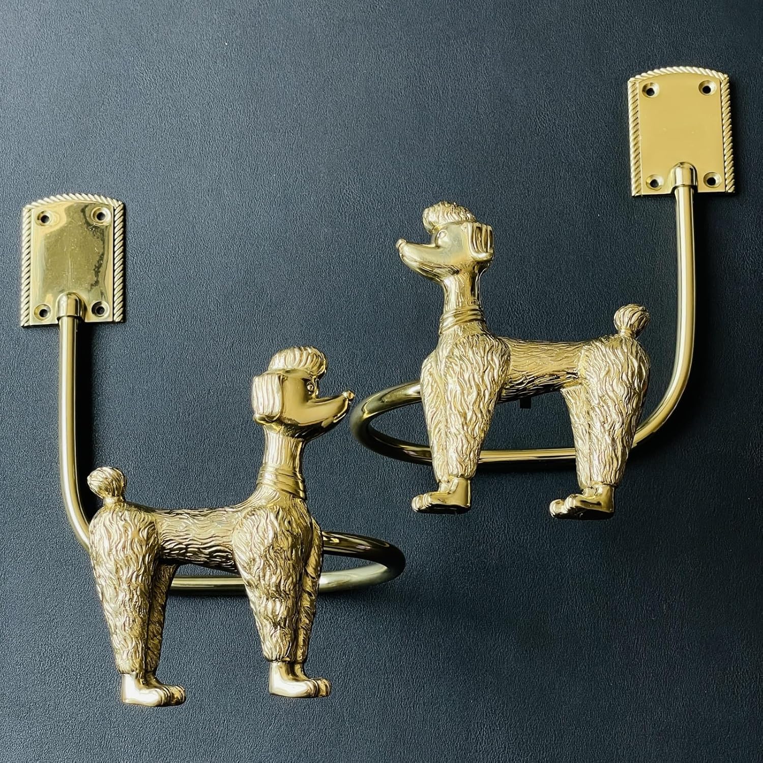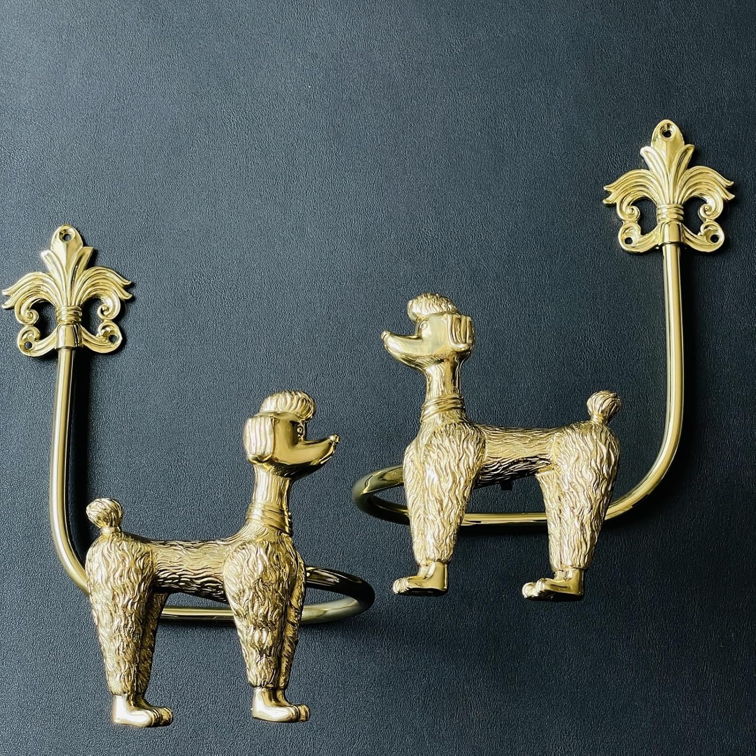 Product DescriptionAdd charm, elegance, and functionality to your home with these Solid Brass Poodle Curtain Holdbacks – a perfect blend of classic craftsmanship and playful design. Handcrafted from 100% solid brass with a vintage gold finish, each tieback features a beautifully detailed poodle shape, making them a standout decorative piece for any room.Whether you’re aiming for a vintage French interior, a dog lover’s decor theme, or just want to add a touch of personality to your curtains or drapes, these holdbacks deliver both style and substance. Ideal for living rooms, bedrooms, studies, or even a stylish kids’ room, these wall-mounted accessories are as durable as they are delightful.These curtain hooks are not only visually striking, but also functional, helping to neatly frame your windows while letting in natural light. With easy wall-mount installation and solid construction, they’re built to last and impress.⸻Key Features & Benefits 🐾 Handmade Dog Design – Each tieback is meticulously shaped into a regal poodle form, perfect for dog lovers and decorative curtain hardware collectors. 🔩 Solid Brass Construction – Heavy-duty and corrosion-resistant, offering durability and a luxurious finish. 🏡 Vintage Decorative Accent – Ideal for French country, eclectic, or classical interiors. 🧱 Wall-Mounted Holdbacks – Easily affix to the wall to hold curtains, drapes, or even use as towel or coat hooks. 🎁 Perfect Gift – A unique and memorable gift for home decorators, pet lovers, or brass decor enthusiasts.Specifications Material: 100% Solid Brass Finish: Polished Gold / Vintage Gold Design: Poodle Dog Shape Mount Type: Wall-Mounted Use: Curtain Tieback / Drapery Holdback / Decorative Wall Hook Quantity: Set of 2 Installation Hardware: included