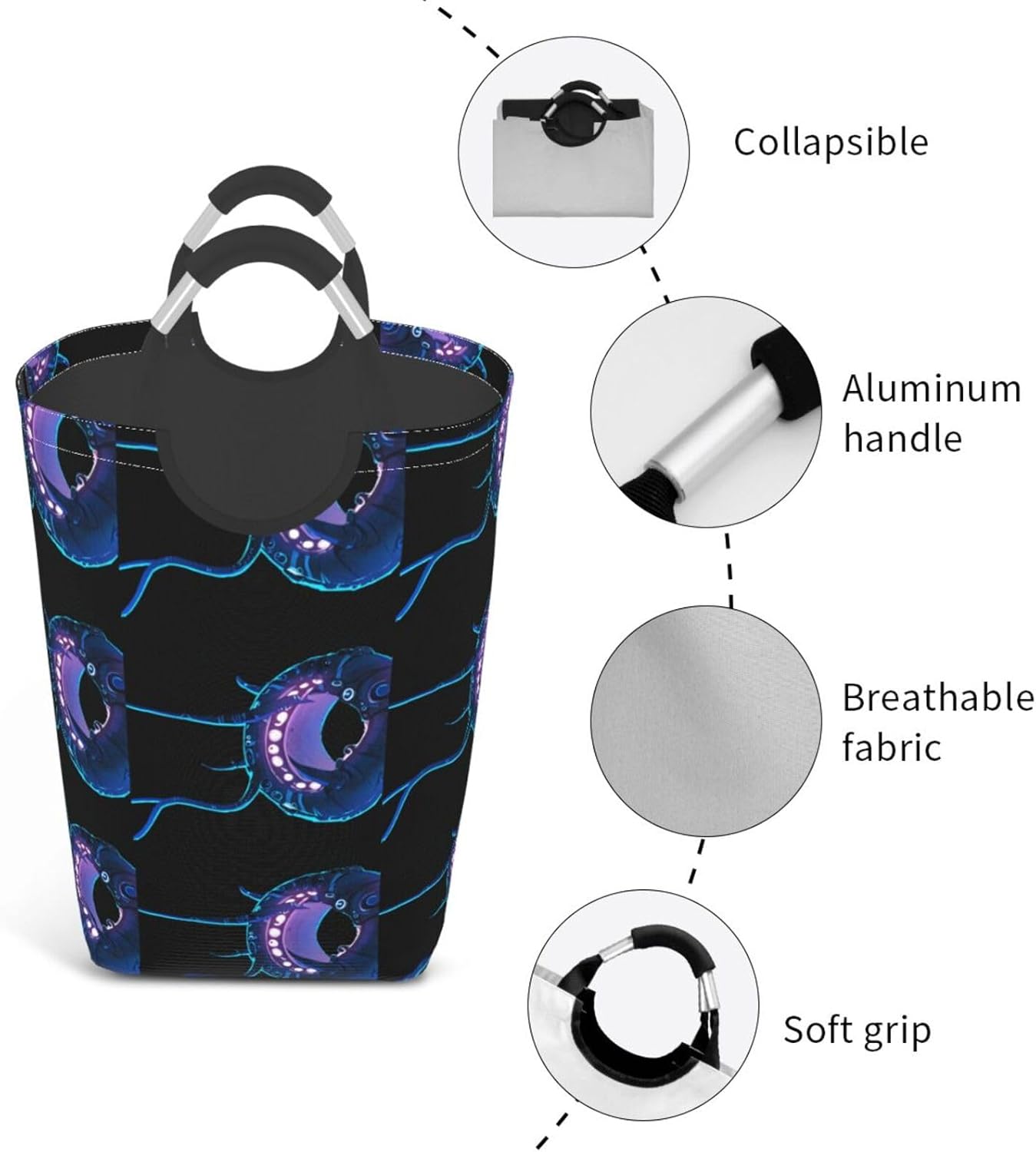 Our Strange creature dirty clothes storage bag is made of polyester, which is lightweight and flexible. It can maintain a stable shape even under heavy pressure and collision. At the same time, the incorporation of Oxford cloth material significantly improves the durability of the product, and it is resistant to wear, bumps and pulling. The storage bag is designed with a large capacity, which can easily carry winter clothes, daily clothes and a variety of sundries. It is easy to carry and store, and fits tightly into the gap of the suitcase after folding. The aluminum handle is sturdy and reliable, supports hanging, and is suitable for a variety of places. In terms of design, it adopts leak-proof technology, combined with waterproof coating and precision sewing, which is effectively waterproof. The exterior uses cutting-edge transfer technology, and a PE board support is added at the bottom to ensure stable load-bearing and prevent tipping. This storage bag is practical and easy to use, and is an ideal choice for travel and home.