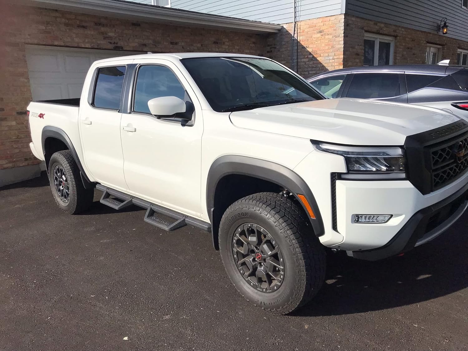 So you love your new Nissan Frontier, so do we...we just thought it needed more tire and a much more leveled look! We get it, we have a soft spot for Nissan's...so we created a couple options we thought you might like, this one is our Truxxx 3″ front and 2″ rear lift kit. This kit is compatible with Nissan Frontier S, SV and Pro4x (2022-2026) 4×4’s (this kit will also work 2wd’s but may require longer rear shocks, we have had some 2wd trucks happy with stock shocks some not so happy). This 3” allows you the room to run bigger tires on either a stock or aftermarket rim - this kit is for someone who like me, uses the truck as a daily commuter, hauling dirt bikes, mountain bikes, snowboards, getting building materials, driving in the snow and rain...you know, 4wd is for when you need it not because you have to have it :-} Seriously though, if you are off-roading at all, we suggest the 2" kit over the 3" kit for a few reasons...at full droop and articulation the stock shocks and brake lines are fully stretched with the 3" kit.... If your off-roading consists of gravel roads, this isn't such a big deal but if the trip to your cabin or fishing hole means some creek crossings or ditch jumping, well we wanted to keep you informed! We have fit 33.00″ tall tires ( 275/70R17) on high offset aftermarket wheels (some models of the stock rims will not be wide enough) but you should always test fit/purchase/order wheels and tires after the lift is installed.. Every wheel and tire company seems to use a different measuring tape, one companies 275/70R17 will be 33.10 inches tall and another may be 32.4" tall yet they have the same size on the sidewall - we can't possibly test ALL combinations of wheels and tires so please install the kit before ordering tires or use an exact combination you have seen fit before!